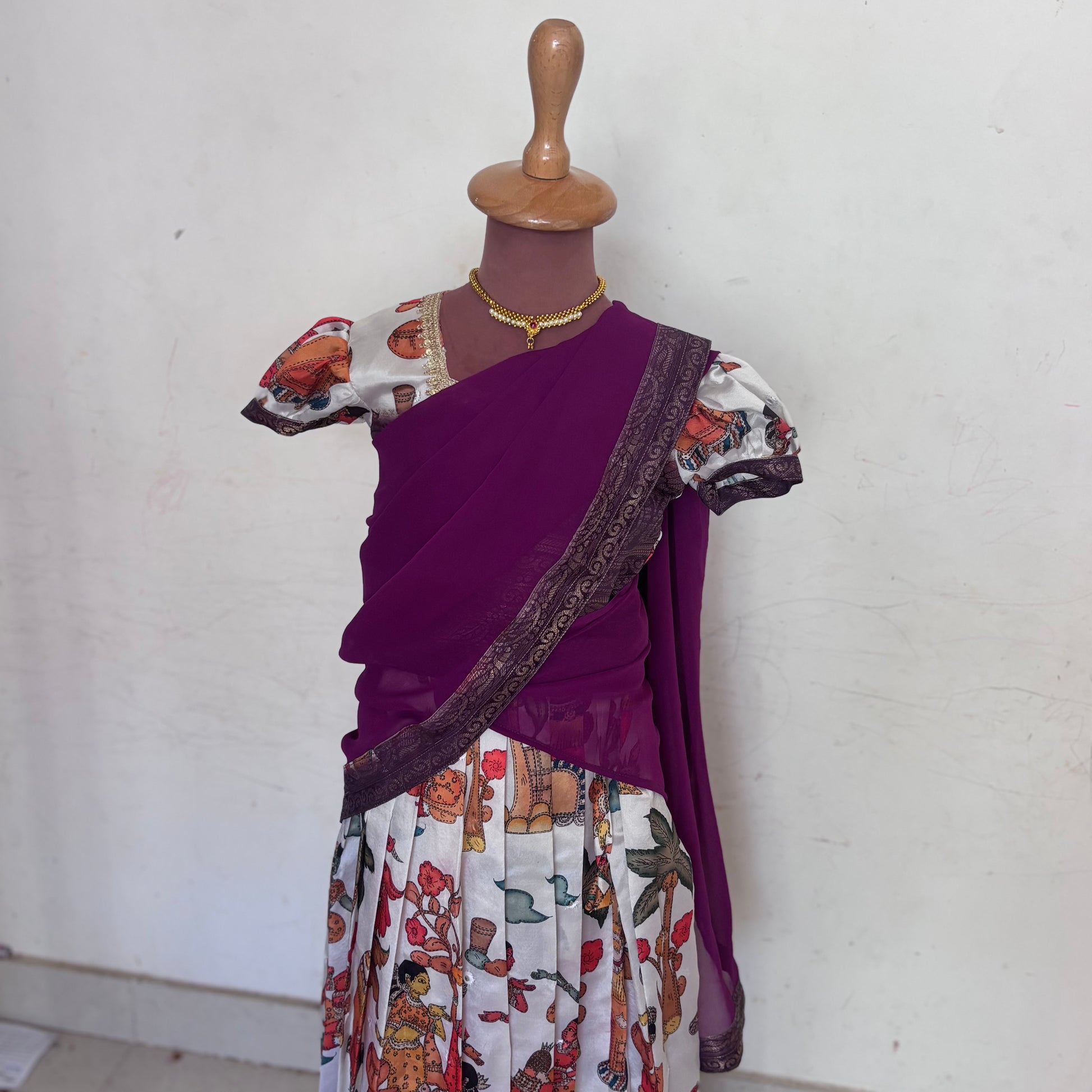This traditional kids dress is expertly crafted from luxurious dola silk, making it both comfortable and fashionable. Perfect for special occasions, its elegant pink color adds a touch of sophistication.